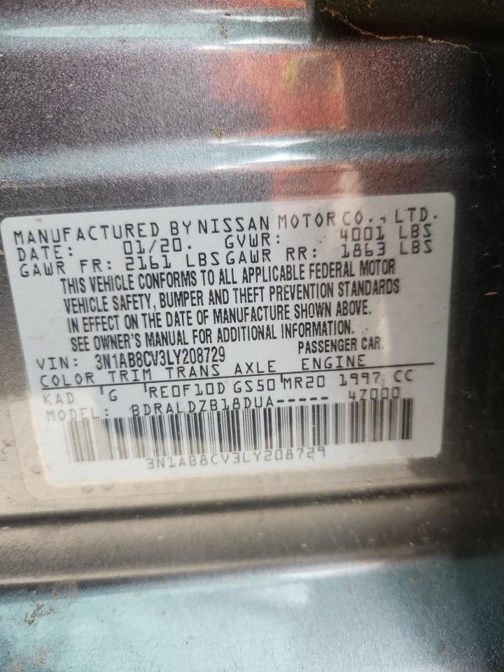 2020 NISSAN SENTRA - 3N1AB8CV3LY208729, колір - Сірий, 2.0, Бензин, із США