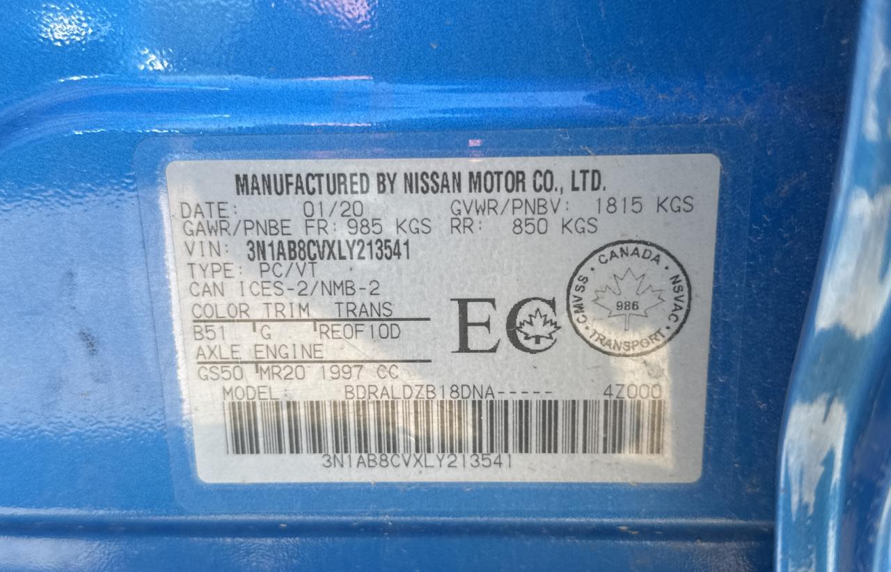 Колір СинійЦиліндри 4VIN 3N1AB8CVXLY213541Стан Заводиться та їде (перевірено)Ушкодження Передня або задняДата аукціона 2025-10-14