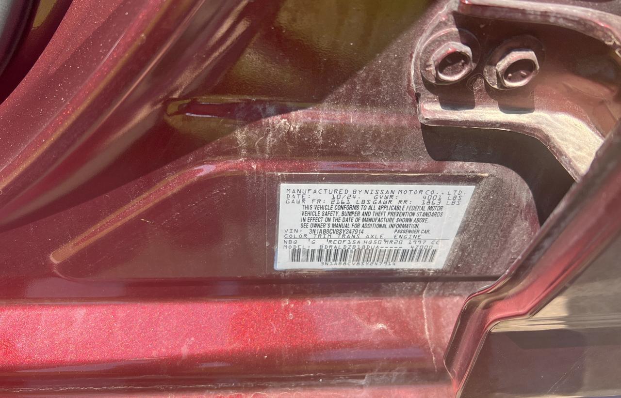 2025 NISSAN SENTRA - 3N1AB8CV8SY247914, колір - Бургундія, 2.0, Бензин, із США