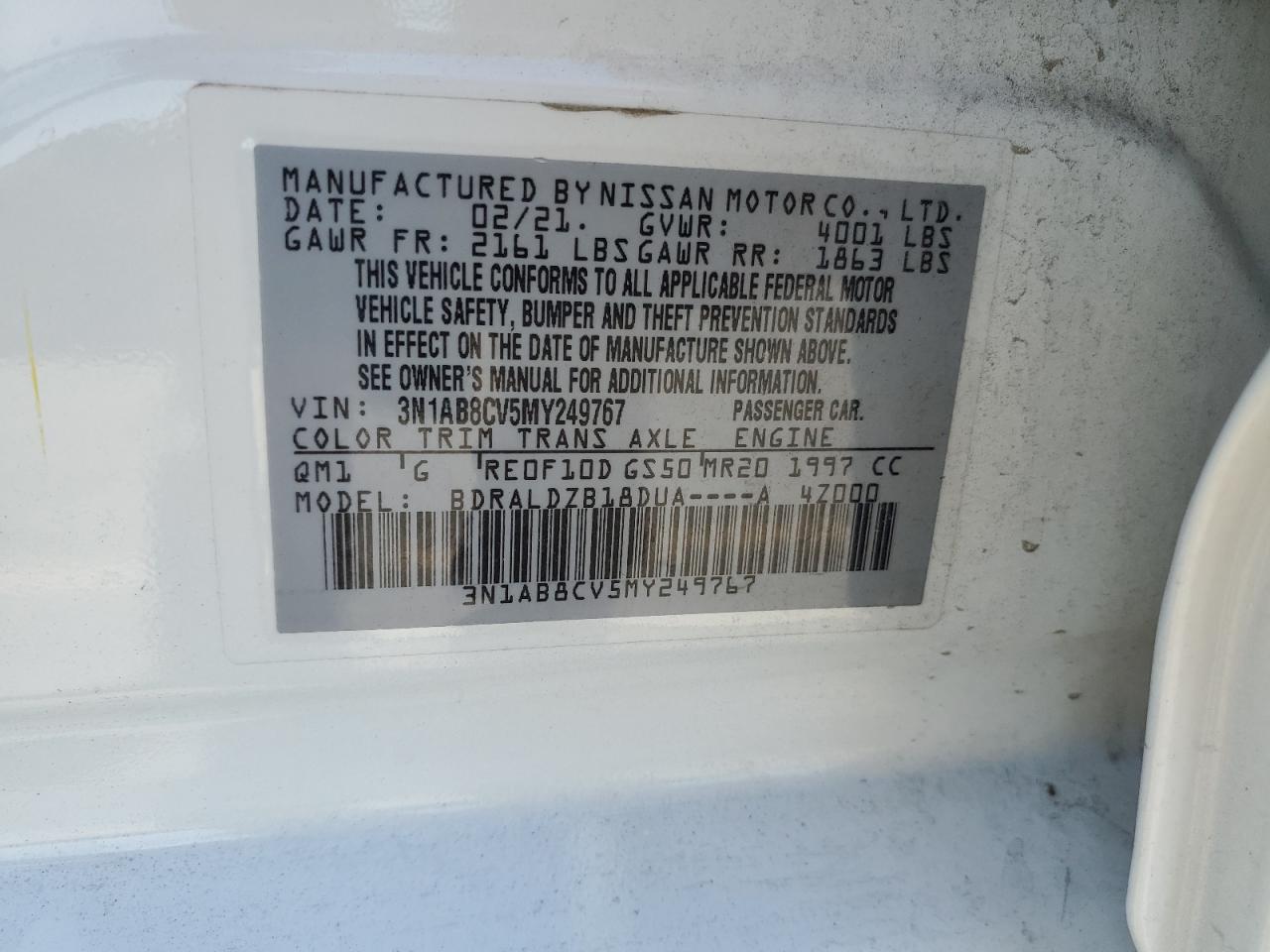 2021 NISSAN SENTRA - 3N1AB8CV5MY249767, колір - Білий, 2.0, Бензин, із США