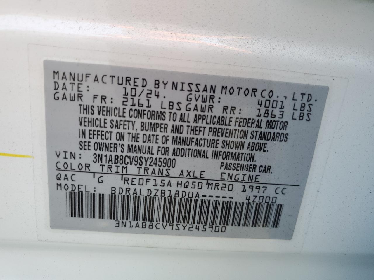 Колір БілийЦиліндри 4VIN 3N1AB8CV9SY245900Стан ЗаводитьсяУшкодження Задня