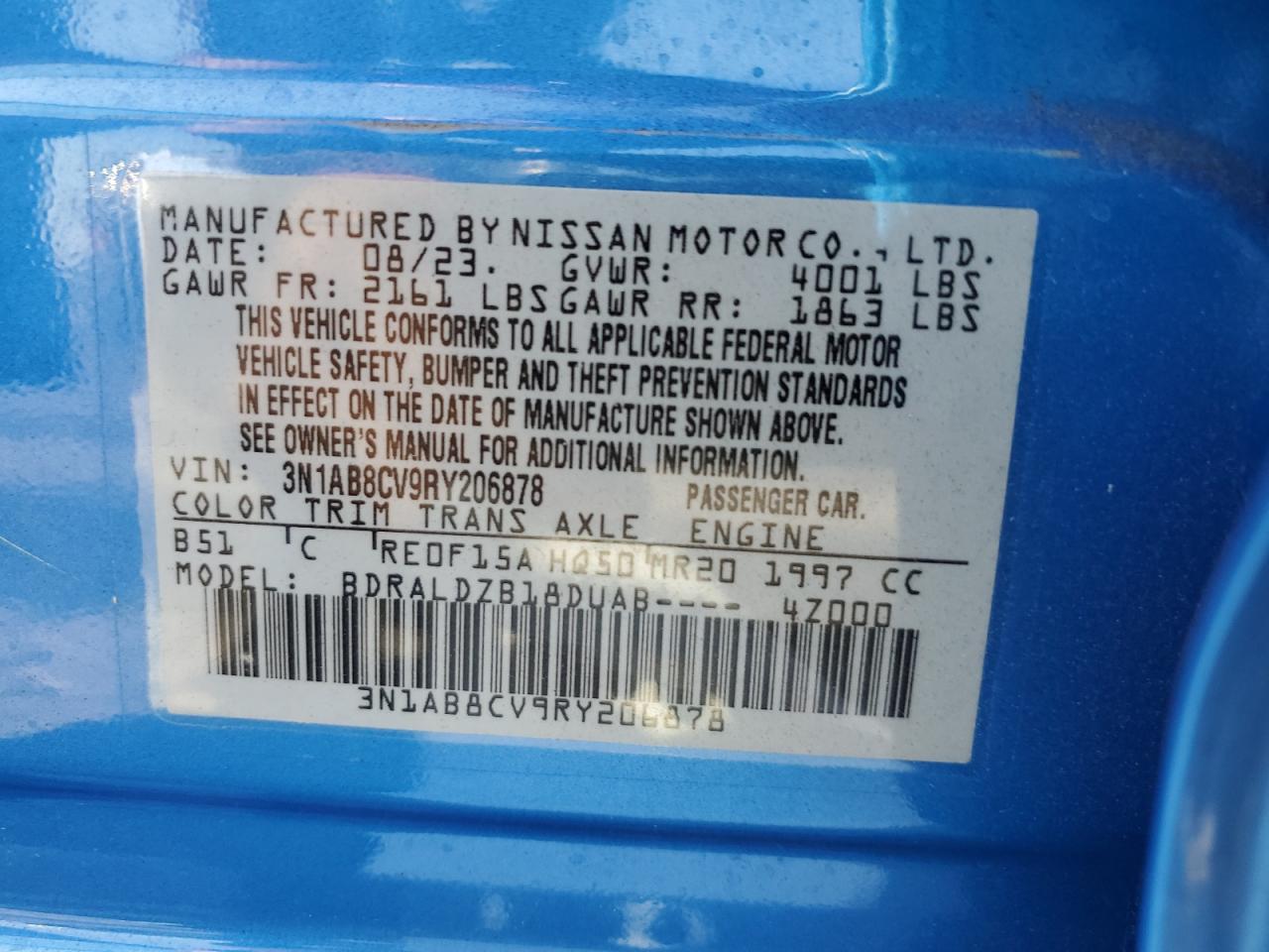 Колір СинійЦиліндри 4VIN 3N1AB8CV9RY206878Стан Заводиться та їде (перевірено)Ушкодження Передня або задня