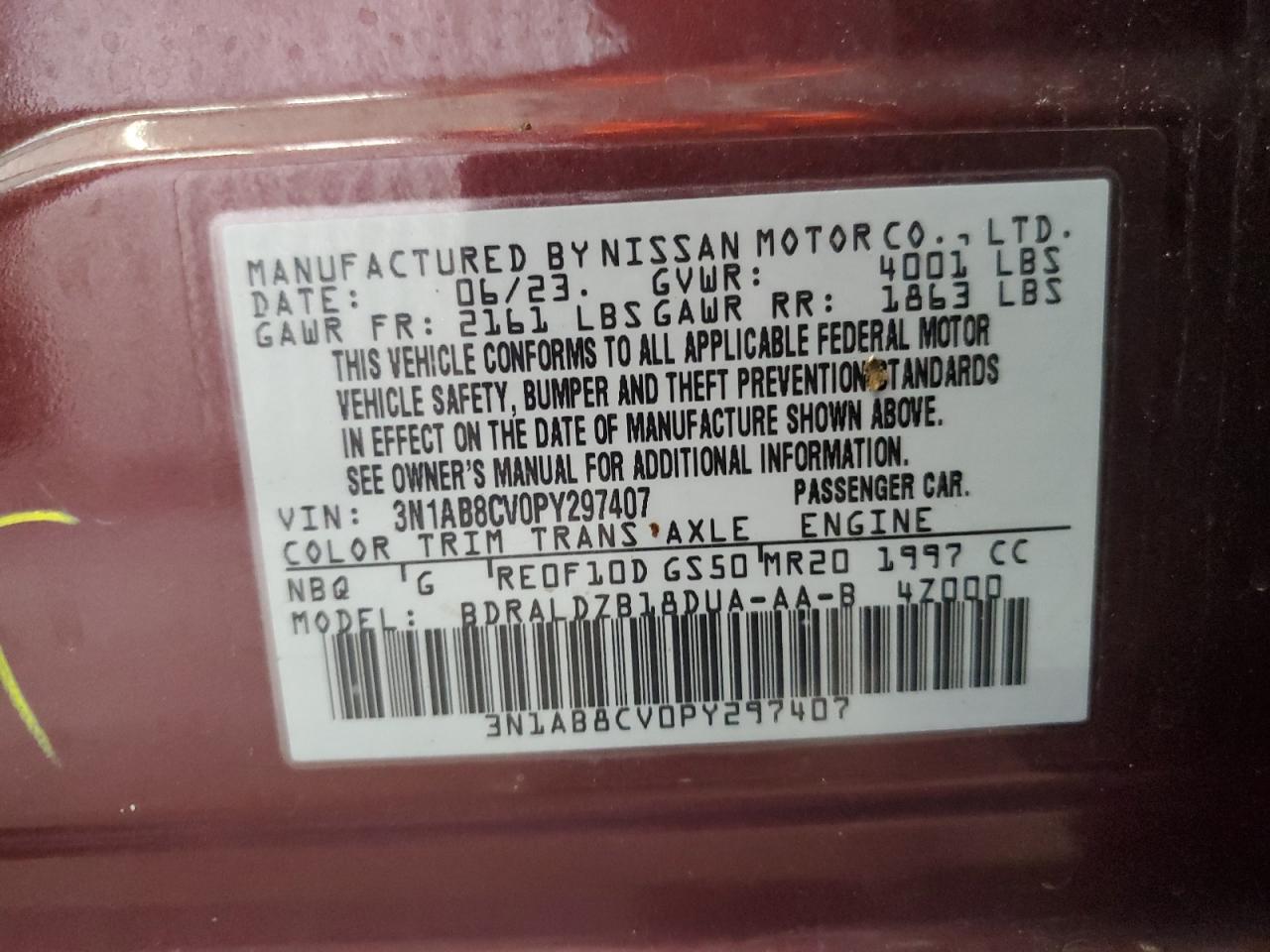 2023 NISSAN SENTRA - 3N1AB8CV0PY297407, колір - Бургундія, 2.0, Бензин, із США