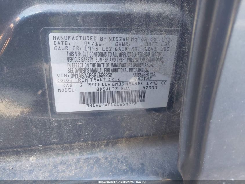 2016 NISSAN SENTRA - 3N1AB7AP6GL659252, колір - Синій, 1.8, Бензин, Передній привід із США
