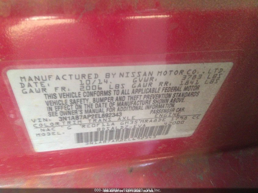 Колір ЧервонийЦиліндри 4Привід Передній привідVIN 3N1AB7AP2EL692343Стан Заводиться та їде (перевірено)Ушкодження Передня або задня