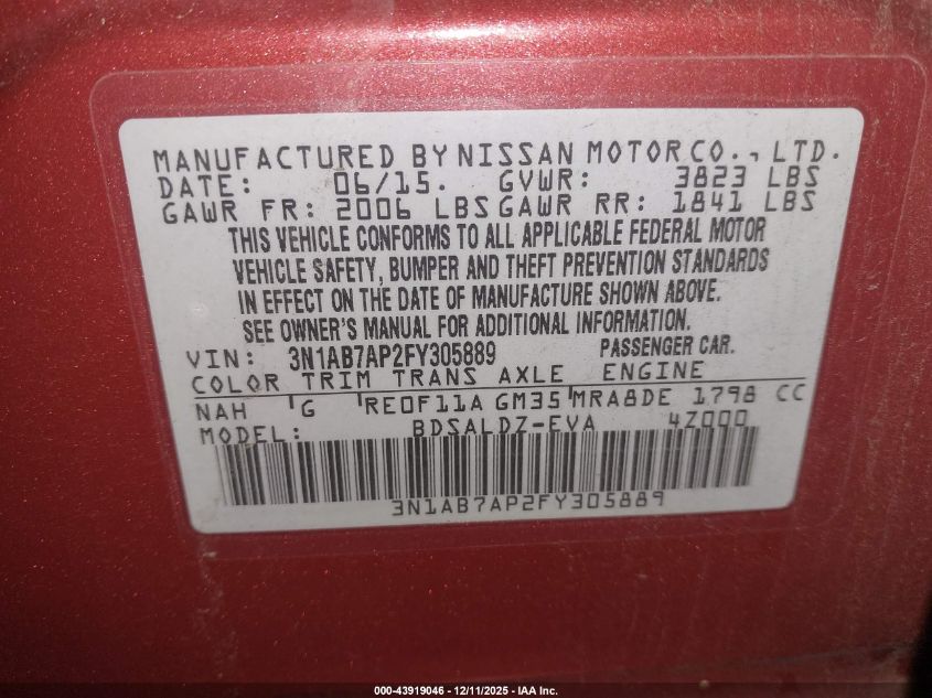 2015 NISSAN SENTRA - 3N1AB7AP2FY305889, колір - Червоний, 1.8, Бензин, Передній привід із США