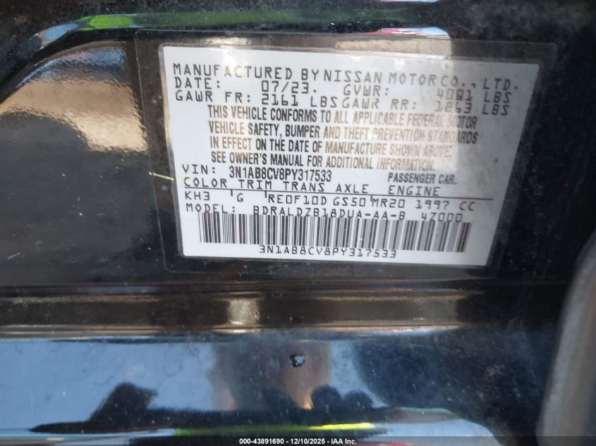 2023 NISSAN SENTRA - 3N1AB8CV8PY317533, колір - Чорний, 2.0, Бензин, Передній привід із США