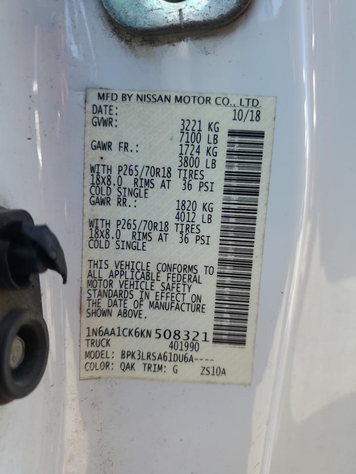 2019 NISSAN TITAN - 1N6AA1CK6KN508321, колір - Білий, 5.6, Бензин, Задній привід із США
