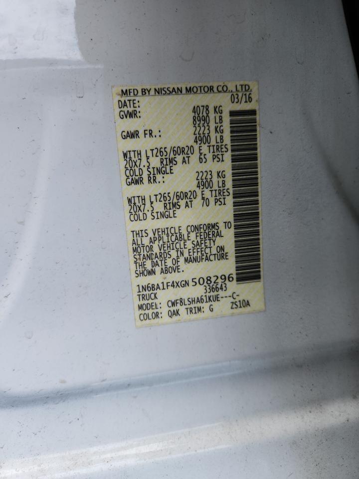 2016 NISSAN TITAN - 1N6BA1F4XGN508296, колір - Білий, 5.0, Дизель, 4x4 з заднім приводом із США