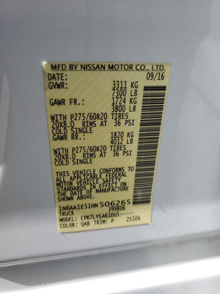 2017 NISSAN TITAN - 1N6AA1E51HN506265, колір - Білий, 5.6, Бензин, 4x4 з заднім приводом із США