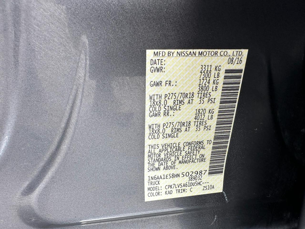 2017 NISSAN TITAN - 1N6AA1E58HN502987, колір - Сірий, 5.6, Бензин, 4x4 з заднім приводом із США