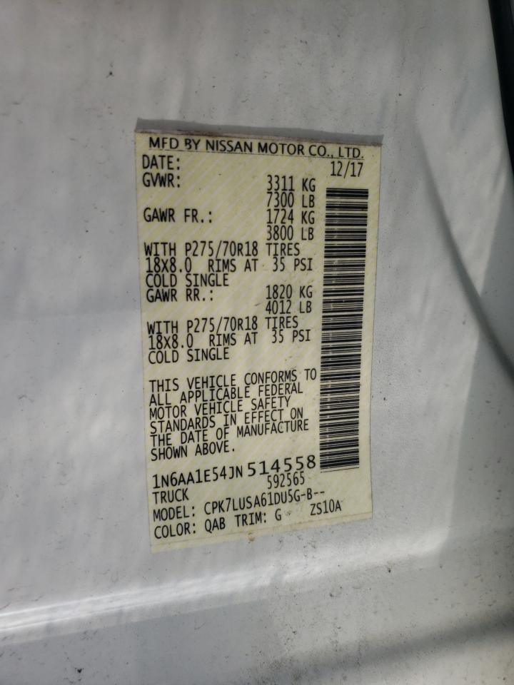 2018 NISSAN TITAN - 1N6AA1E54JN514558, колір - Білий, 5.6, Бензин, 4x4 з заднім приводом із США
