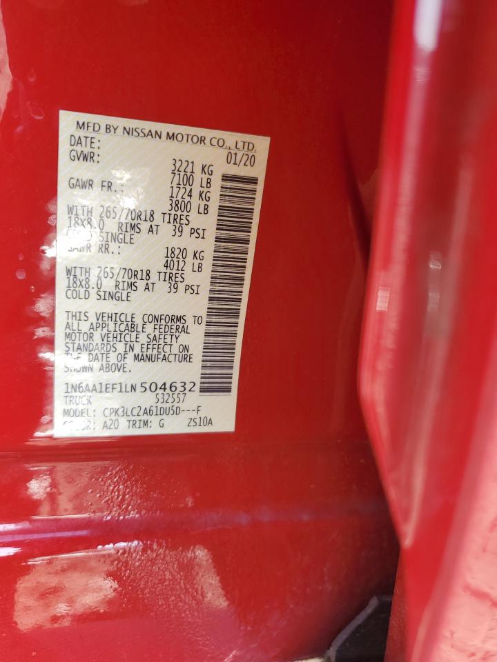2020 NISSAN TITAN - 1N6AA1EF1LN504632, колір - Червоний, 5.6, Бензин, Задній привід із США