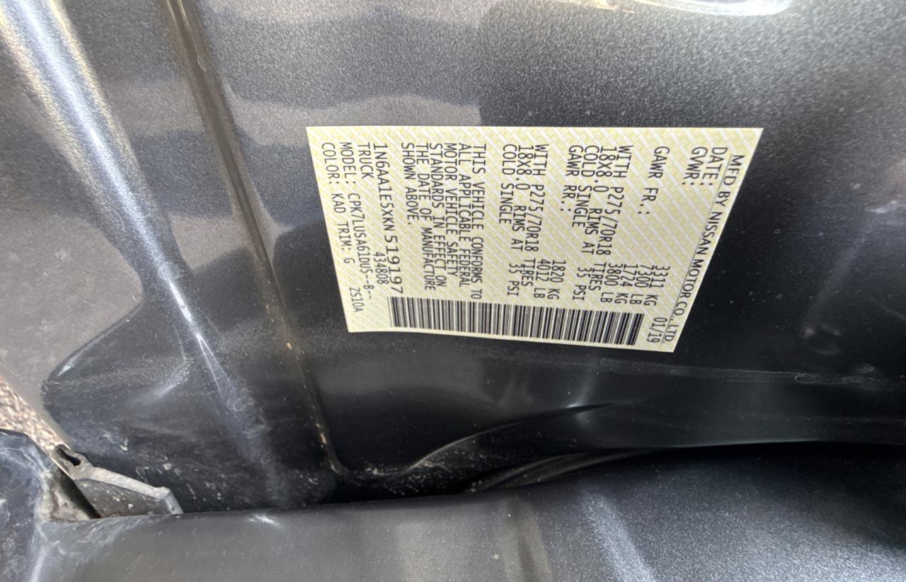 Колір СірийЦиліндри 8Привід 4x4 з заднім приводомVIN 1N6AA1E5XKN519197Стан Заводиться та їде (перевірено)Ушкодження ЗадняДата аукціона 2025-10-06