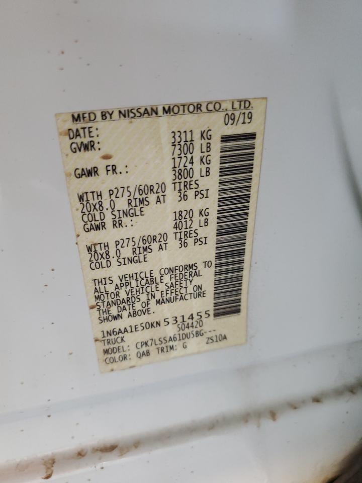 2019 NISSAN TITAN - 1N6AA1E50KN531455, колір - Білий, 5.6, Бензин, 4x4 з заднім приводом із США