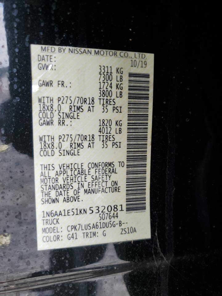 2019 NISSAN TITAN - 1N6AA1E51KN532081, колір - Чорний, 5.6, Бензин, 4x4 з заднім приводом із США