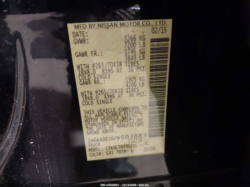 2015 NISSAN TITAN - 1N6AA0EJ6FN503883, колір - Чорний, 5.6, Бензин, Повний привід із США