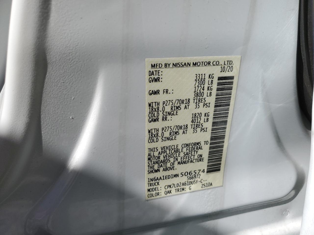 2021 NISSAN TITAN - 1N6AA1ED1MN506574, колір - Білий, 5.6, Бензин, 4x4 з заднім приводом із США