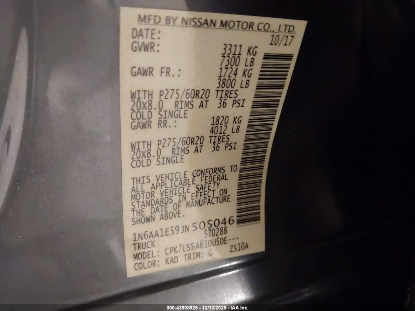 2018 NISSAN TITAN - 1N6AA1E59JN505046, колір - Сірий, 5.6, Бензин, Повний привід із США
