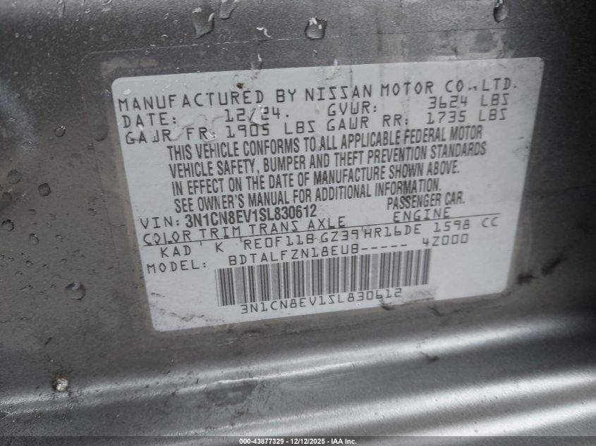 2025 NISSAN VERSA - 3N1CN8EV1SL830612, колір - Сірий, 1.6, Бензин, Передній привід із США
