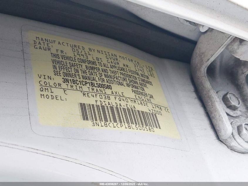 2011 NISSAN VERSA - 3N1BC1CP1BL500580, колір - Білий, 1.8, Бензин, Передній привід із США