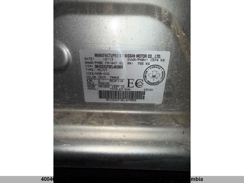 Колір СірийЦиліндри 4Привід Передній привідVIN 3N1CE2CP3EL403969Стан СтаціонарноУшкодження ПередняДата аукціона 2025-12-15