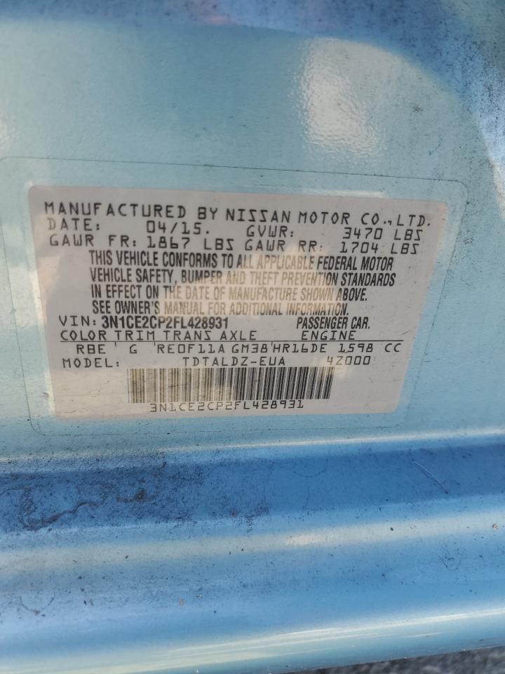 2015 NISSAN VERSA NOTE - 3N1CE2CP2FL428931, колір - Синій, 1.6, Бензин, із США