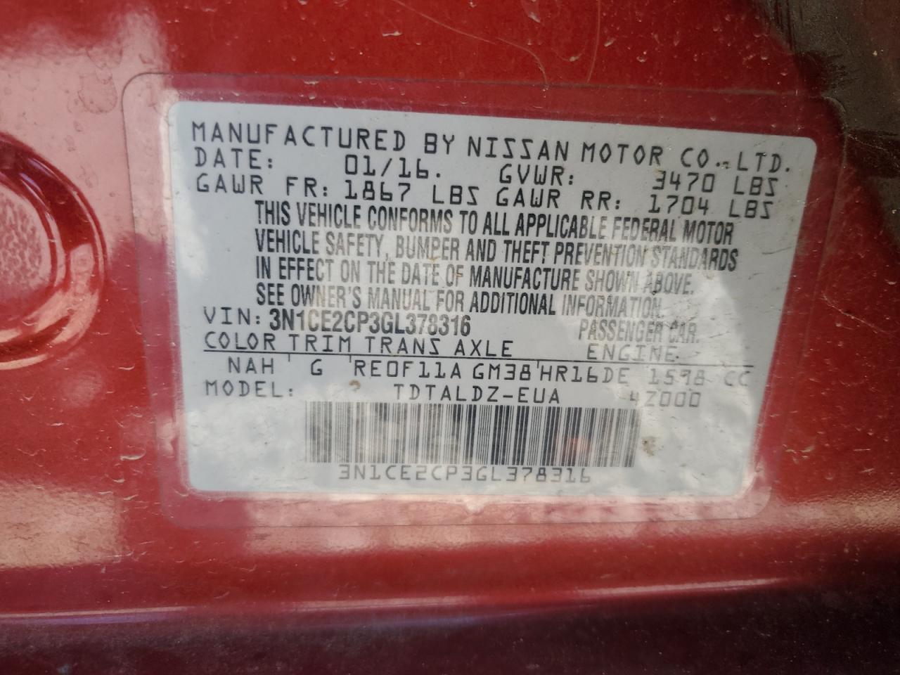 2016 NISSAN VERSA NOTE - 3N1CE2CP3GL378316, колір - Бордовий, 1.6, Бензин, із США
