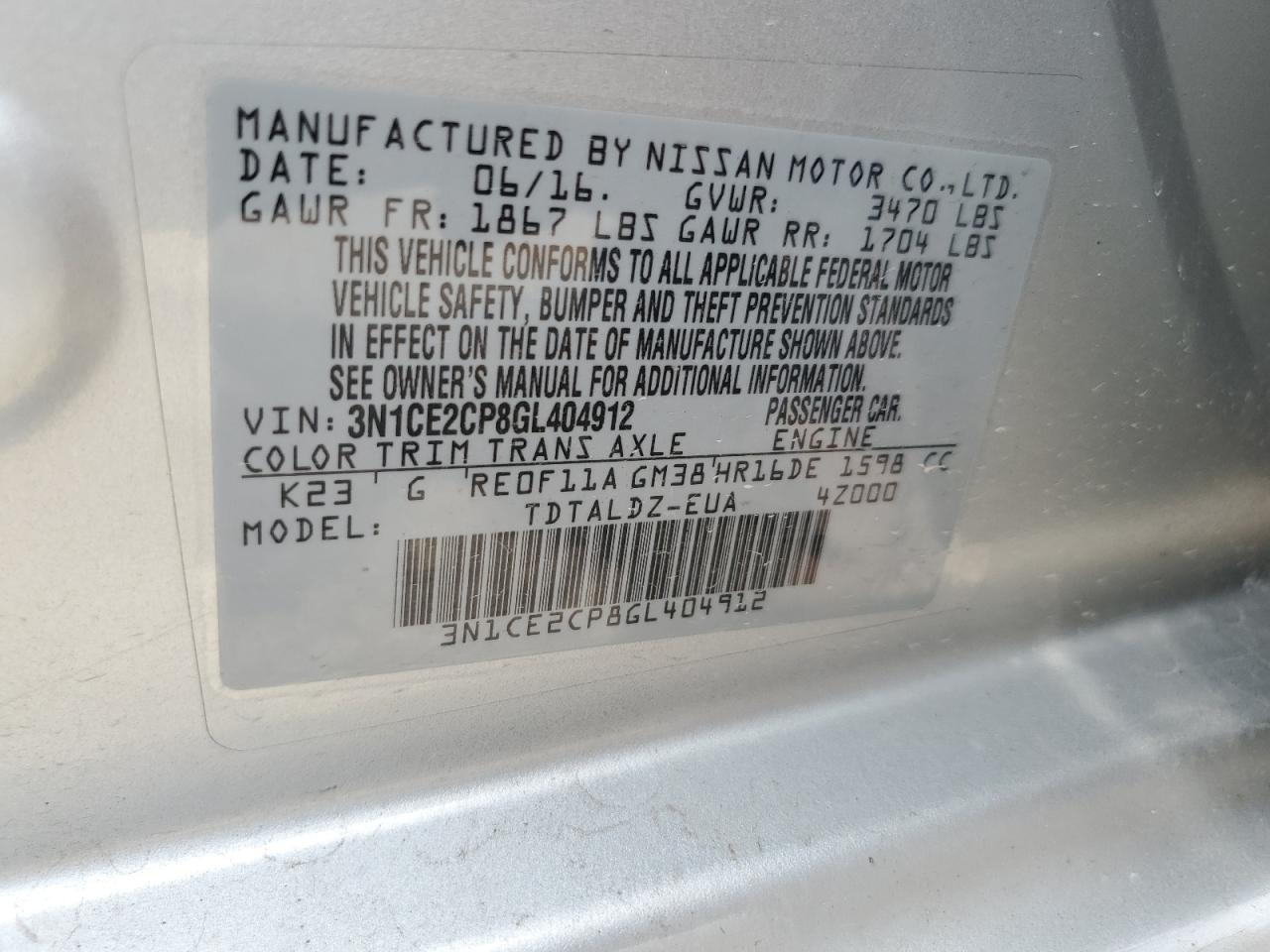 2016 NISSAN VERSA NOTE - 3N1CE2CP8GL404912, колір - Срібний, 1.6, Бензин, із США