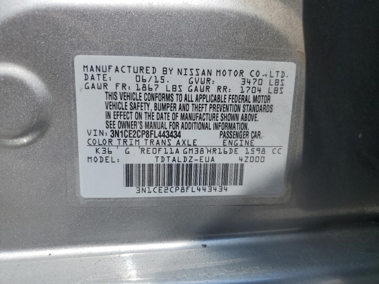 2015 NISSAN VERSA NOTE - 3N1CE2CP8FL443434, колір - Сірий, 1.6, Бензин, із США