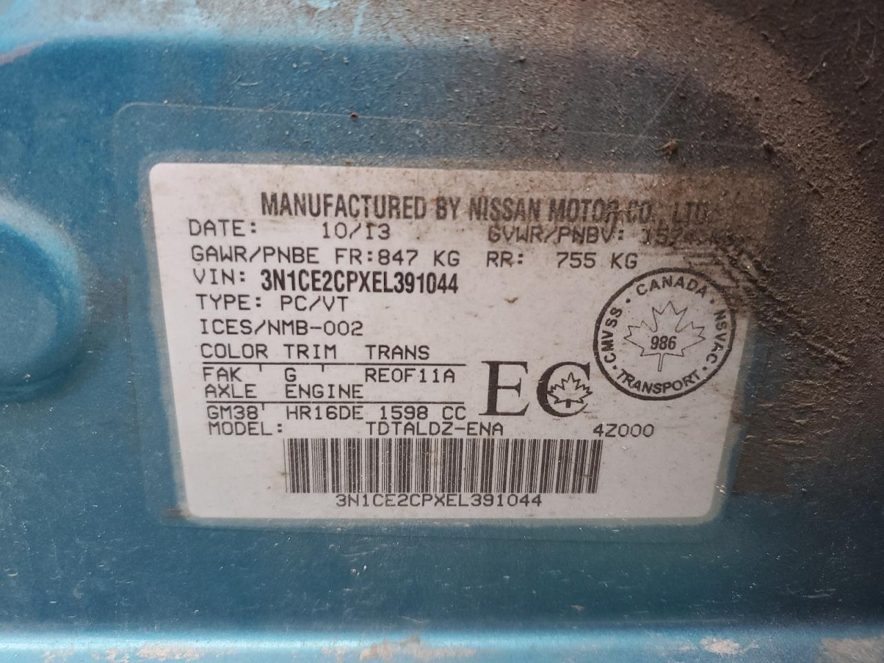 2014 NISSAN VERSA NOTE - 3N1CE2CPXEL391044, колір - Синій, 1.6, Бензин, із США