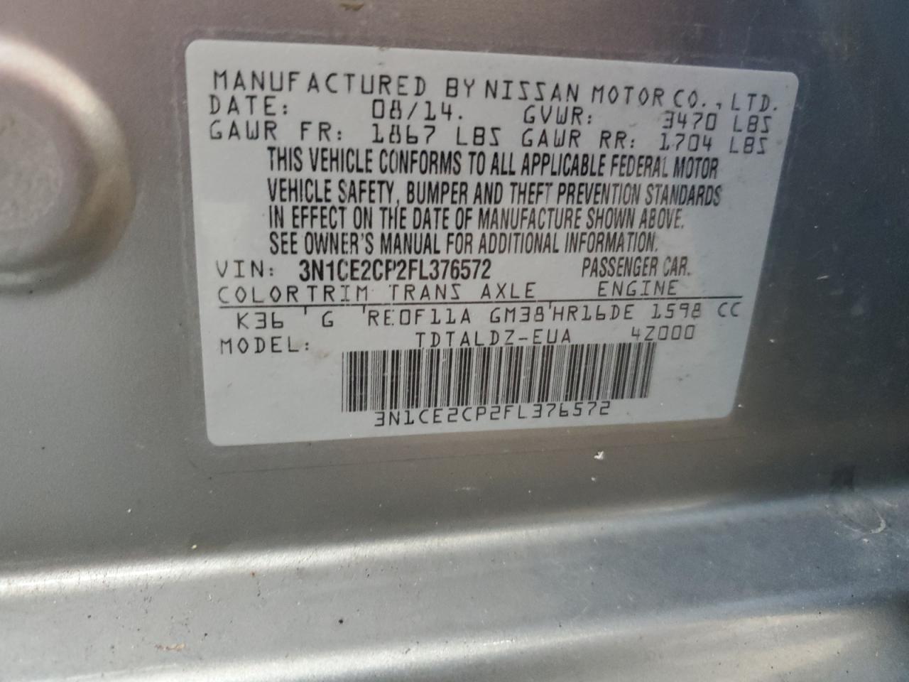 2015 NISSAN VERSA NOTE - 3N1CE2CP2FL376572, колір - Срібний, 1.6, Бензин, із США