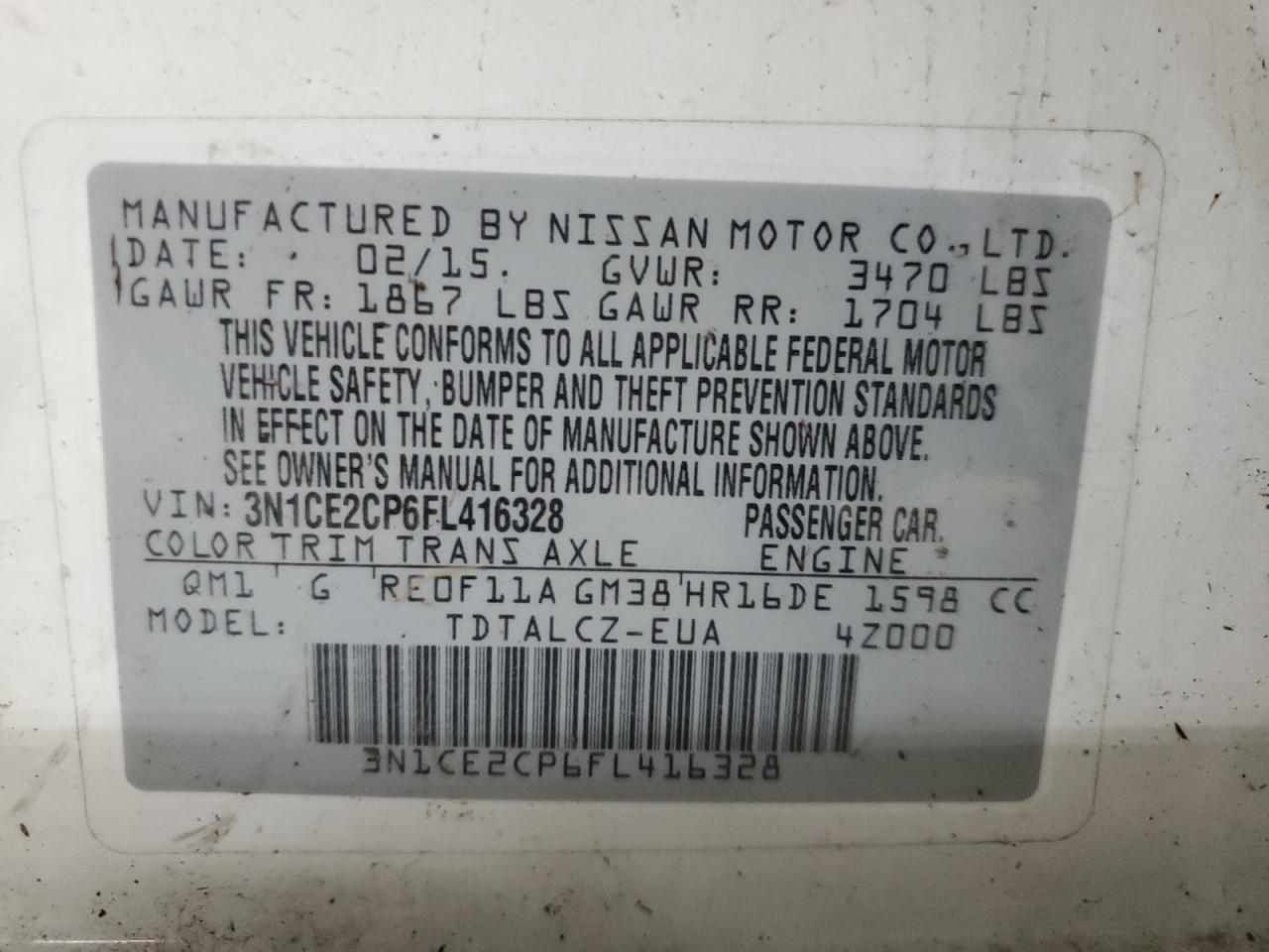2015 NISSAN VERSA NOTE - 3N1CE2CP6FL416328, колір - Білий, 1.6, Бензин, із США