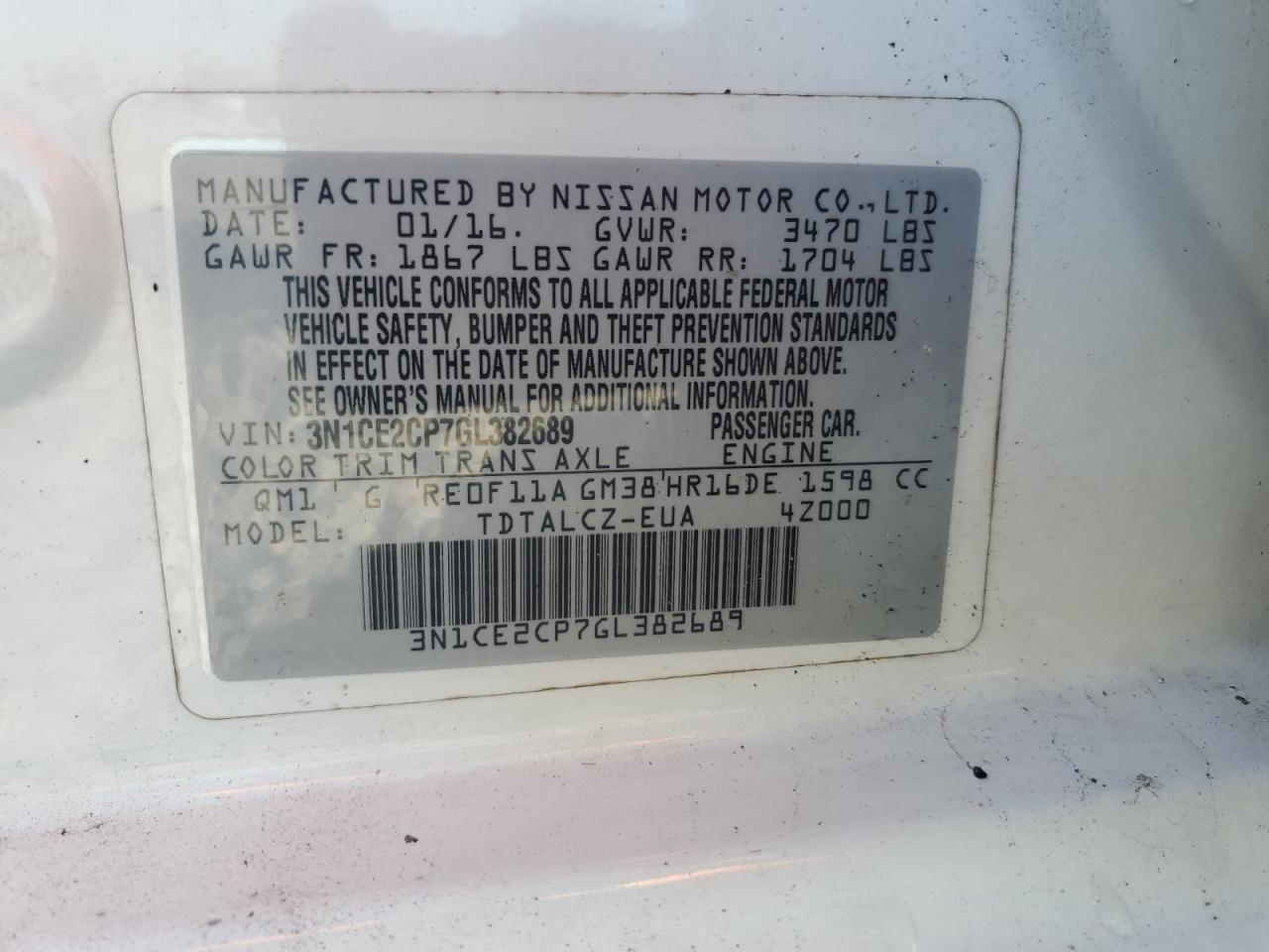 2016 NISSAN VERSA NOTE - 3N1CE2CP7GL382689, колір - Білий, 1.6, Бензин, із США