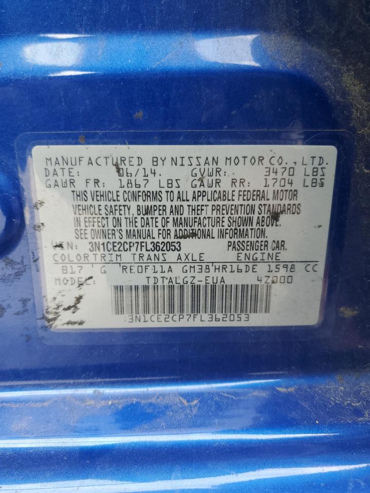 2015 NISSAN VERSA NOTE - 3N1CE2CP7FL362053, колір - Синій, 1.6, Бензин, із США