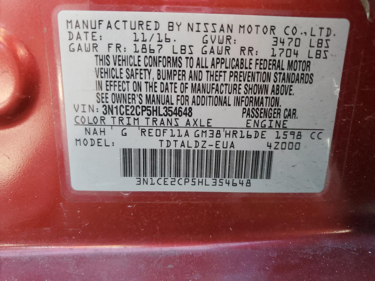 2017 NISSAN VERSA NOTE - 3N1CE2CP5HL354648, колір - Бордовий, 1.6, Бензин, із США
