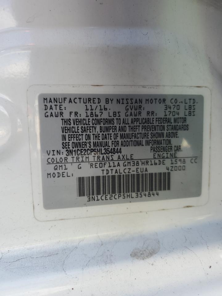 2017 NISSAN VERSA NOTE - 3N1CE2CP5HL354844, колір - Білий, 1.6, Бензин, із США
