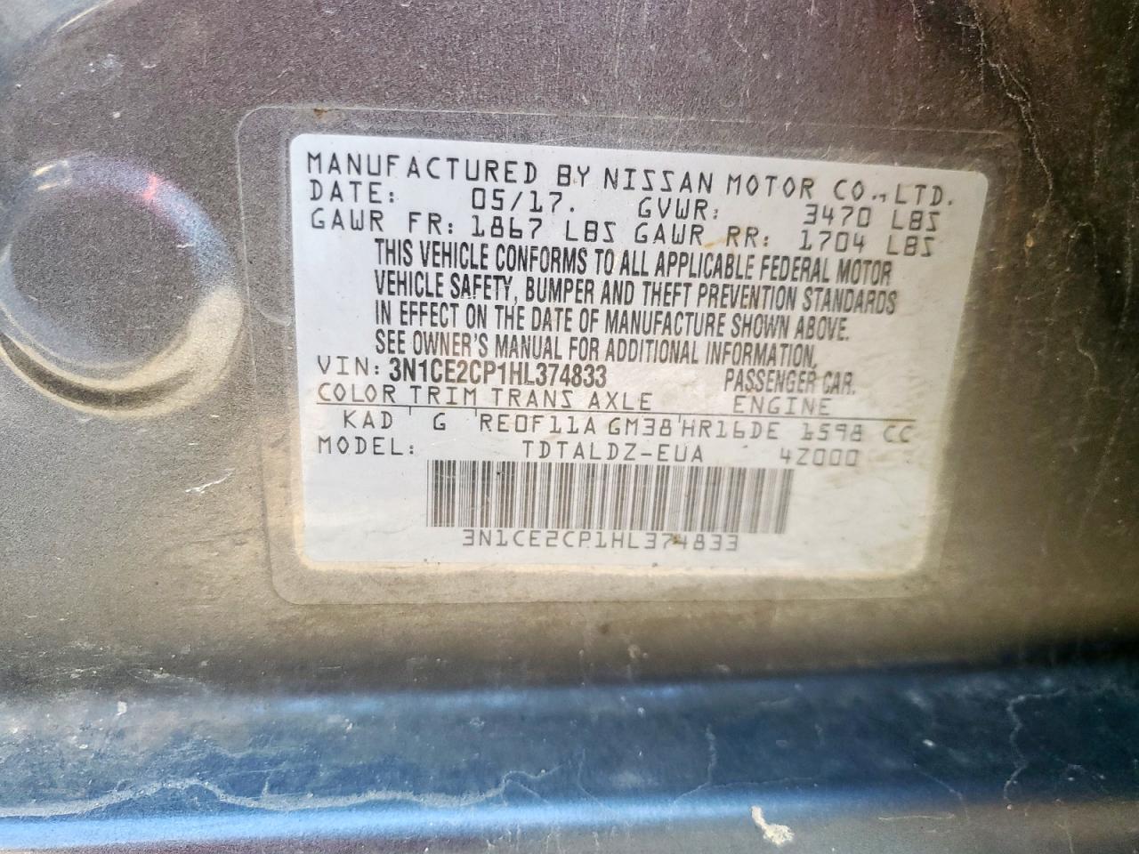 Колір СірийЦиліндри 4VIN 3N1CE2CP1HL374833Стан Заводиться та їде (перевірено)Ушкодження Передня або задняДата аукціона 2025-10-07