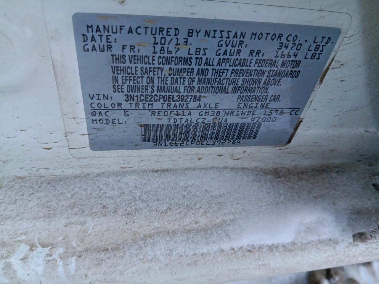 Колір БілийЦиліндри 4VIN 3N1CE2CP0EL392784Стан НевідомоУшкодження Передня або задня