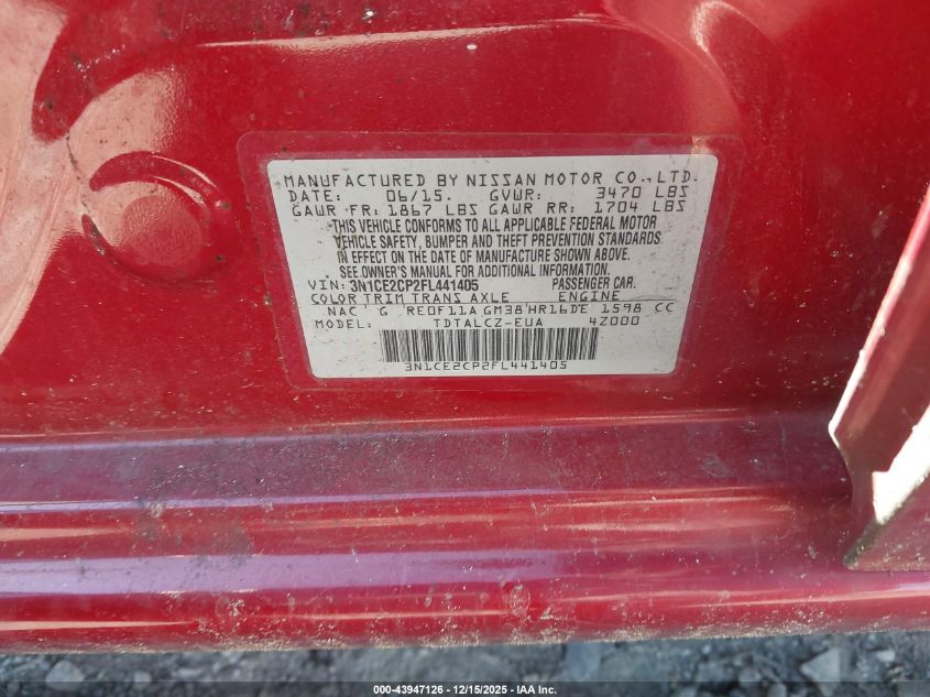 2015 NISSAN VERSA NOTE - 3N1CE2CP2FL441405, колір - Червоний, 1.6, Бензин, Передній привід із США