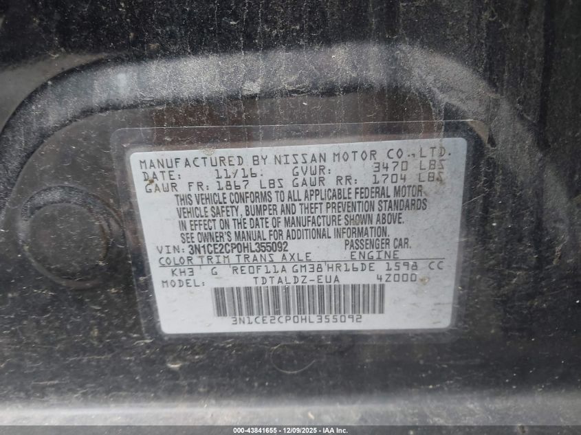2017 NISSAN VERSA NOTE - 3N1CE2CP0HL355092, колір - Чорний, 1.6, Бензин, Передній привід із США