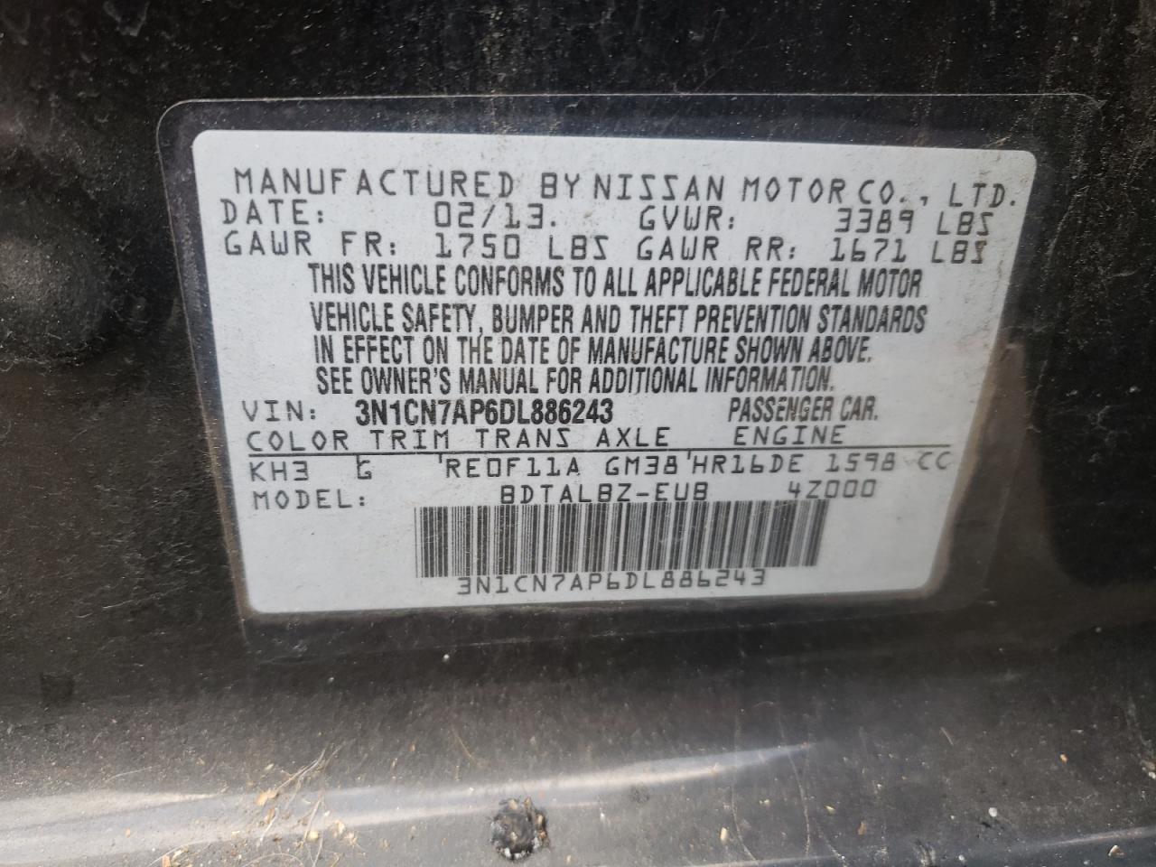 2013 NISSAN VERSA - 3N1CN7AP6DL886243, колір - Чорний, 1.6, Бензин, із США
