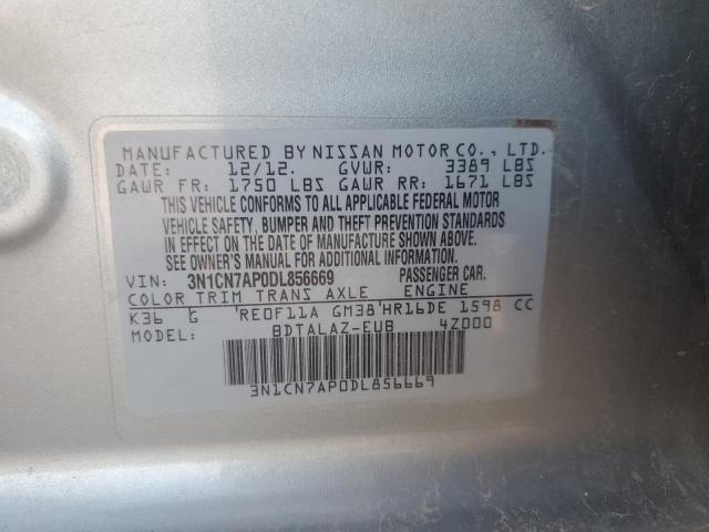 2013 NISSAN VERSA - 3N1CN7AP0DL856669, колір - Срібний, 1.6, Бензин, із США
