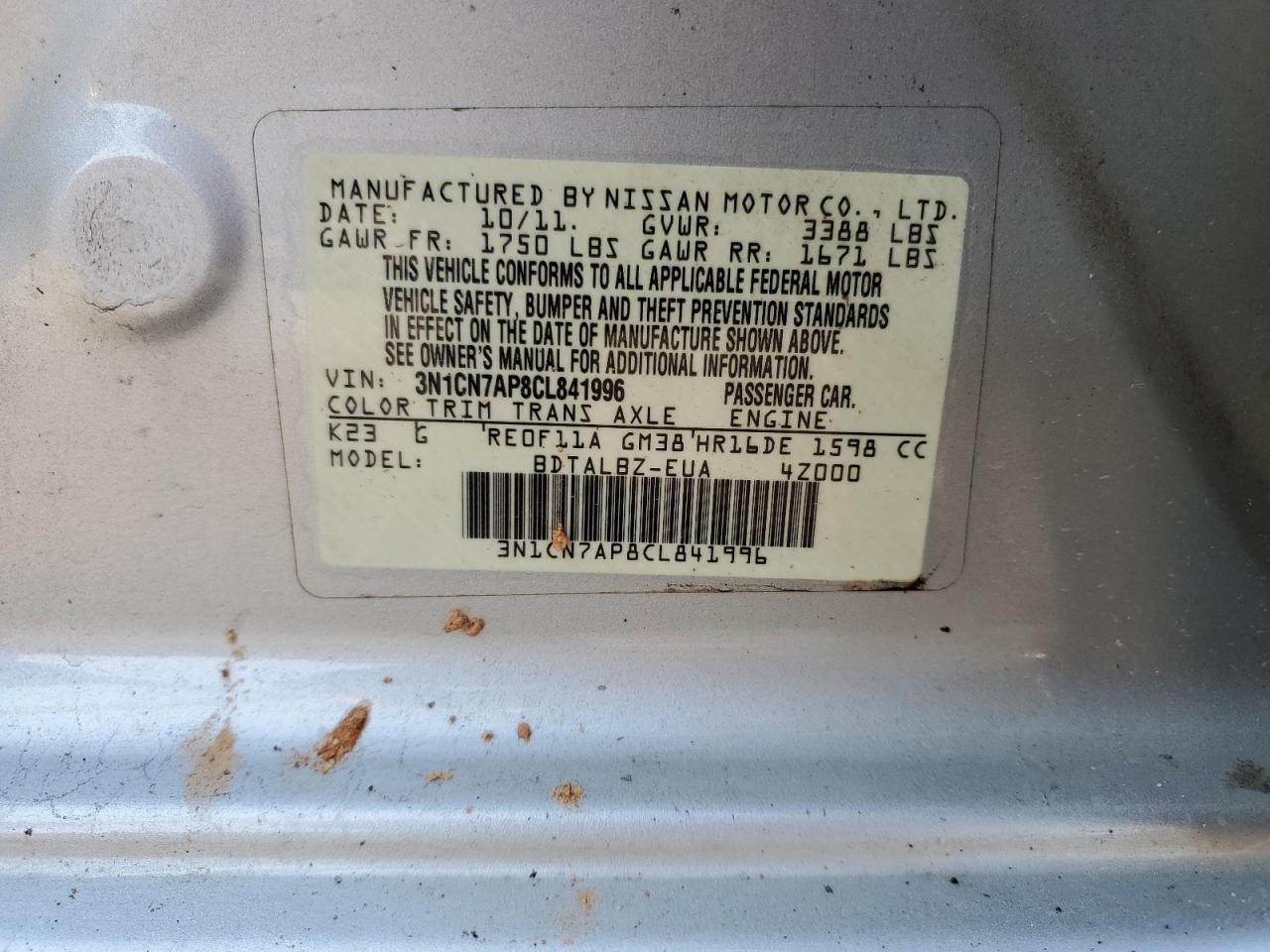 Колір СрібнийЦиліндри 4VIN 3N1CN7AP8CL841996Стан Заводиться та їде (перевірено)Ушкодження Передня або задня