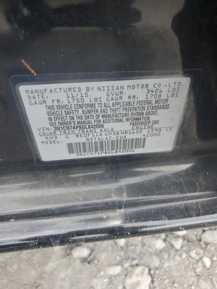 2016 NISSAN VERSA - 3N1CN7AP8GL842006, колір - Чорний, 1.6, Бензин, із США