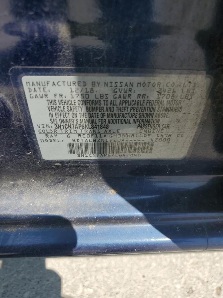 2019 NISSAN VERSA - 3N1CN7AP6KL841848, колір - Синій, 1.6, Бензин, із США