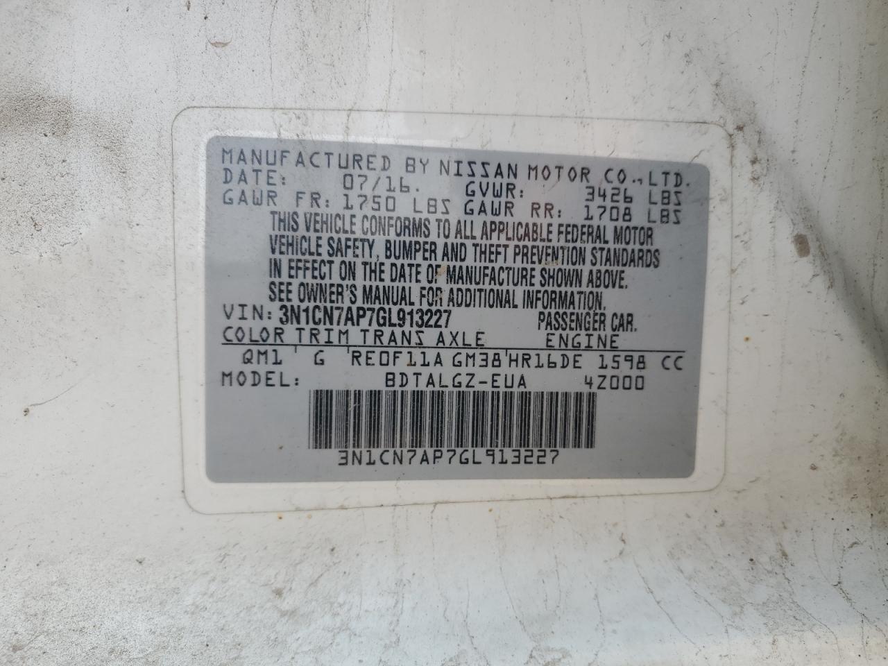 2016 NISSAN VERSA - 3N1CN7AP7GL913227, колір - Білий, 1.6, Бензин, із США
