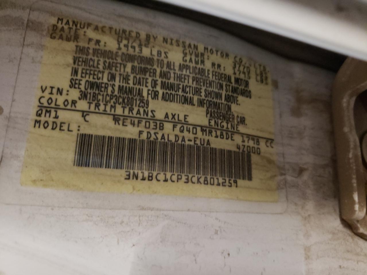 2012 NISSAN VERSA - 3N1BC1CP3CK801259, колір - Білий, 1.8, Бензин, із США