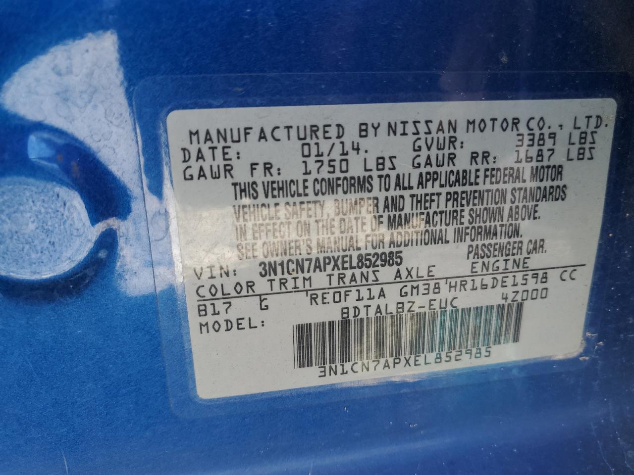 2014 NISSAN VERSA - 3N1CN7APXEL852985, колір - Синій, 1.6, Бензин, із США