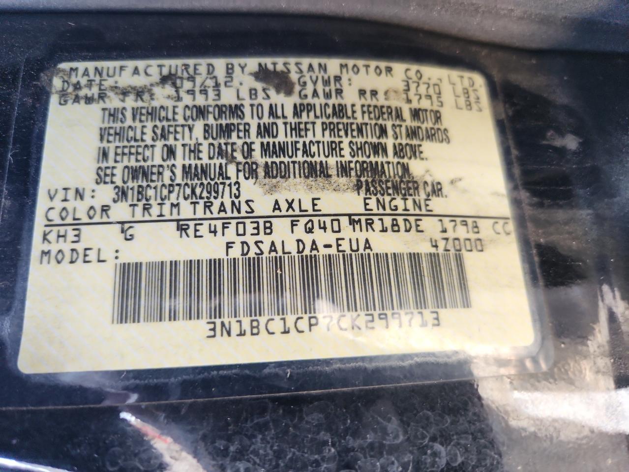 2012 NISSAN VERSA - 3N1BC1CP7CK299713, колір - Чорний, 1.8, Бензин, із США